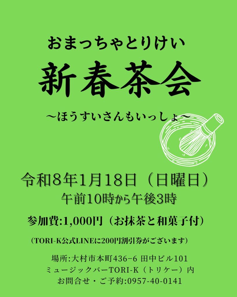 おまっちゃとりけい クーポンゲットのともだち登録はこちら おまっちゃとりけい新春お茶会 どうぞお問い合わせください
