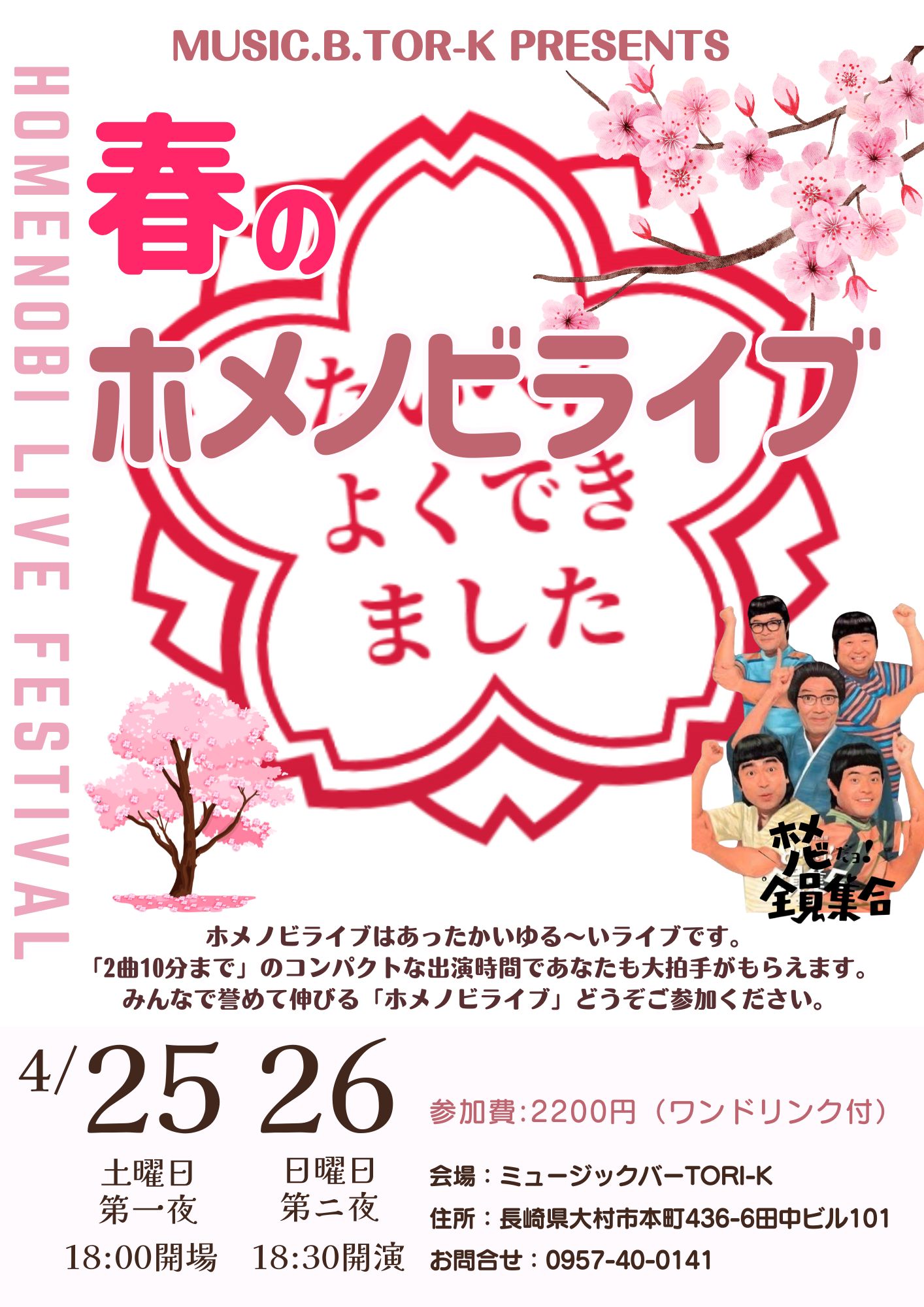 アマチュアミュージシャンの冬の祭典「春のホメノビライブ-ホメノビだよ全員集合-」いよいよ開幕です♪