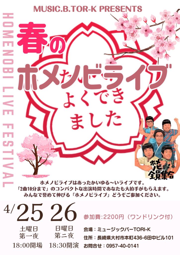 2026年4月25日土曜日 18:00オープン 18:30スタート 参加費:2200円(ワンドリンク付き) 出演枠はまだまだありますエントリー絶賛受付中です! ホメノビライブエントリーはこちらから 観覧は随時受け付けてお […]